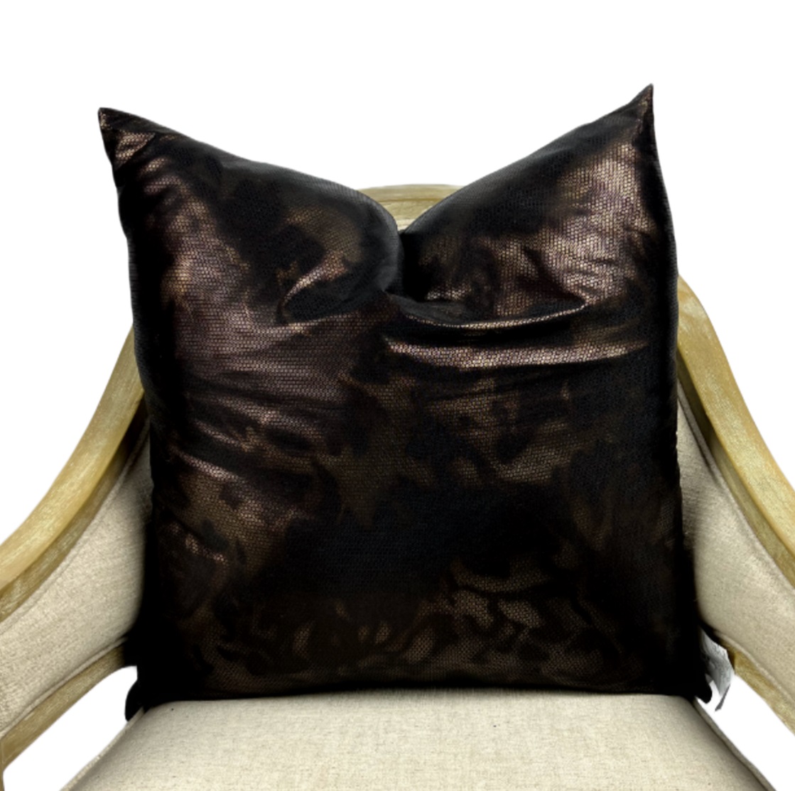 These decorative pillows are designed to add a touch of chic sophistication and modern flair to any interior space. The pillows are crafted from a shiny bronze fabric, giving them a luxurious and eye-catching appearance. The bronze color adds warmth and elegance, making these pillows a versatile addition to various decor styles.
