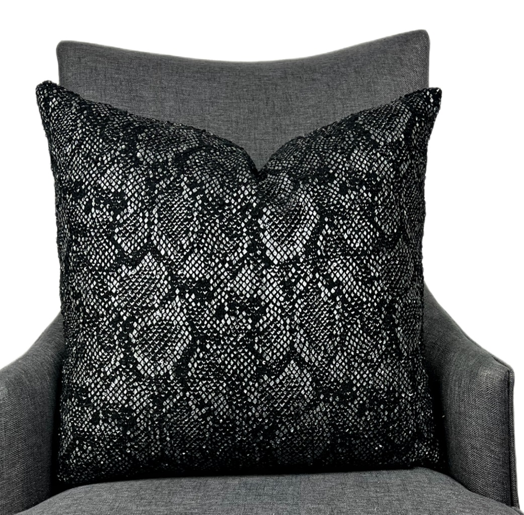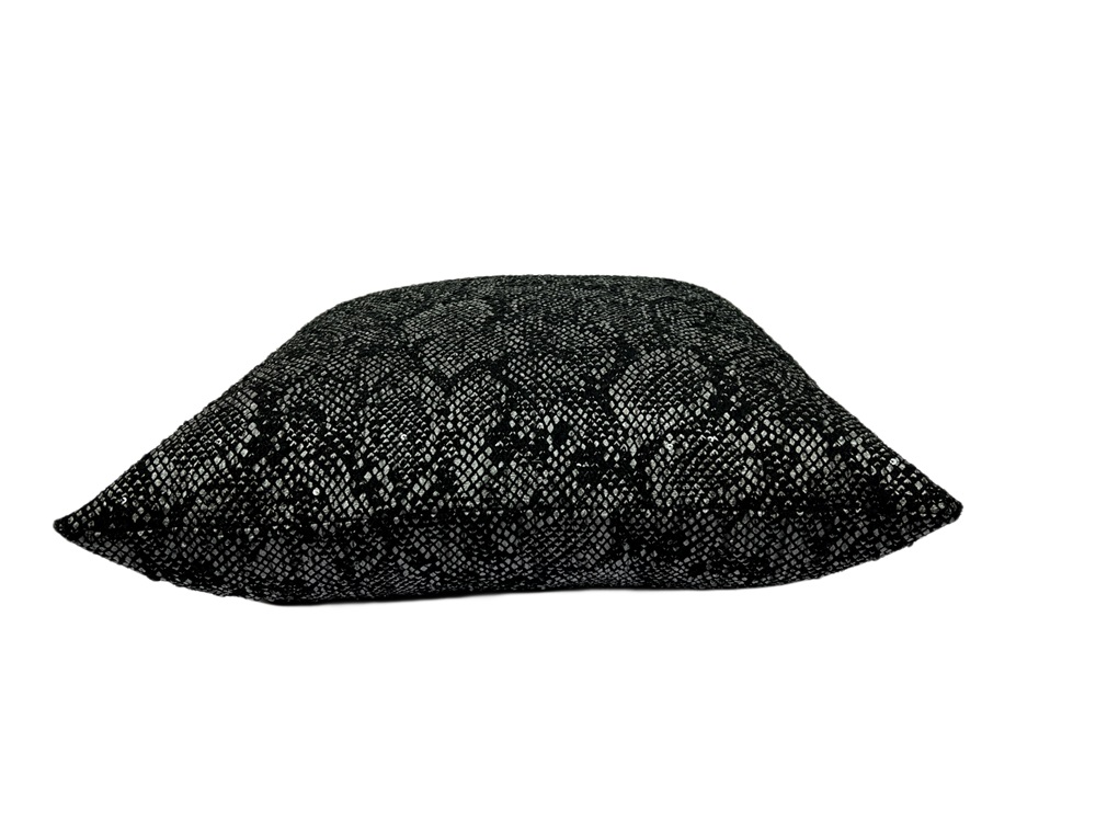 Decorative pillows with phenomenal black and silver snake design finished with scattered black sequins